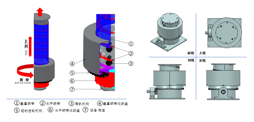 * 安全可靠,升降機依靠裝配的兩條不銹鋼帶,構成高穩定性、且耐用的立柱;不會像液壓缸一樣蠕動,亦不會隨著時間推移像纜繩一樣拉伸。